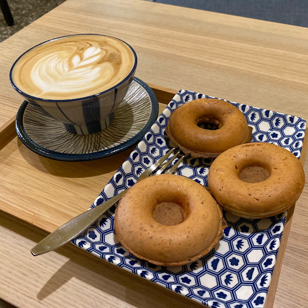 店貓非常可愛,會巡視整間店,超有趣 拿鐵好喝,圈圈燒建議點甜口的,比鹹口味滋味更勝一籌