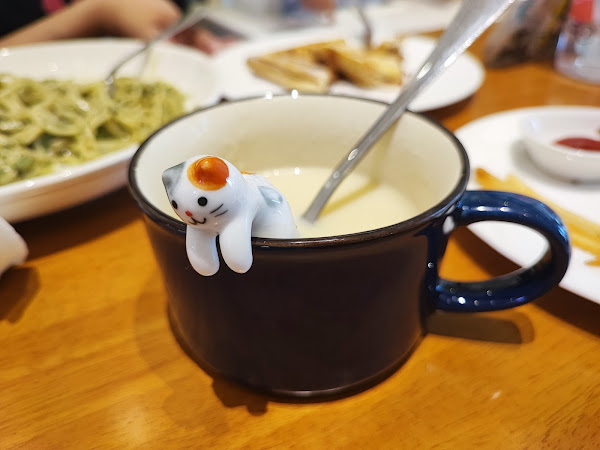 2 週前今天點嫩炒雞肉義大利麵,選的是香辣墨椒醬汁,另一份是豬排蛋蛋綠咖哩,選全熟,還點一杯紅茶一杯綠茶,都是微微 吃義大利麵時覺得好吃,隨手挖了老公的綠咖哩,更好吃!馬上換盤!😂 …